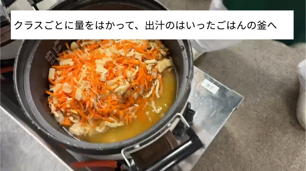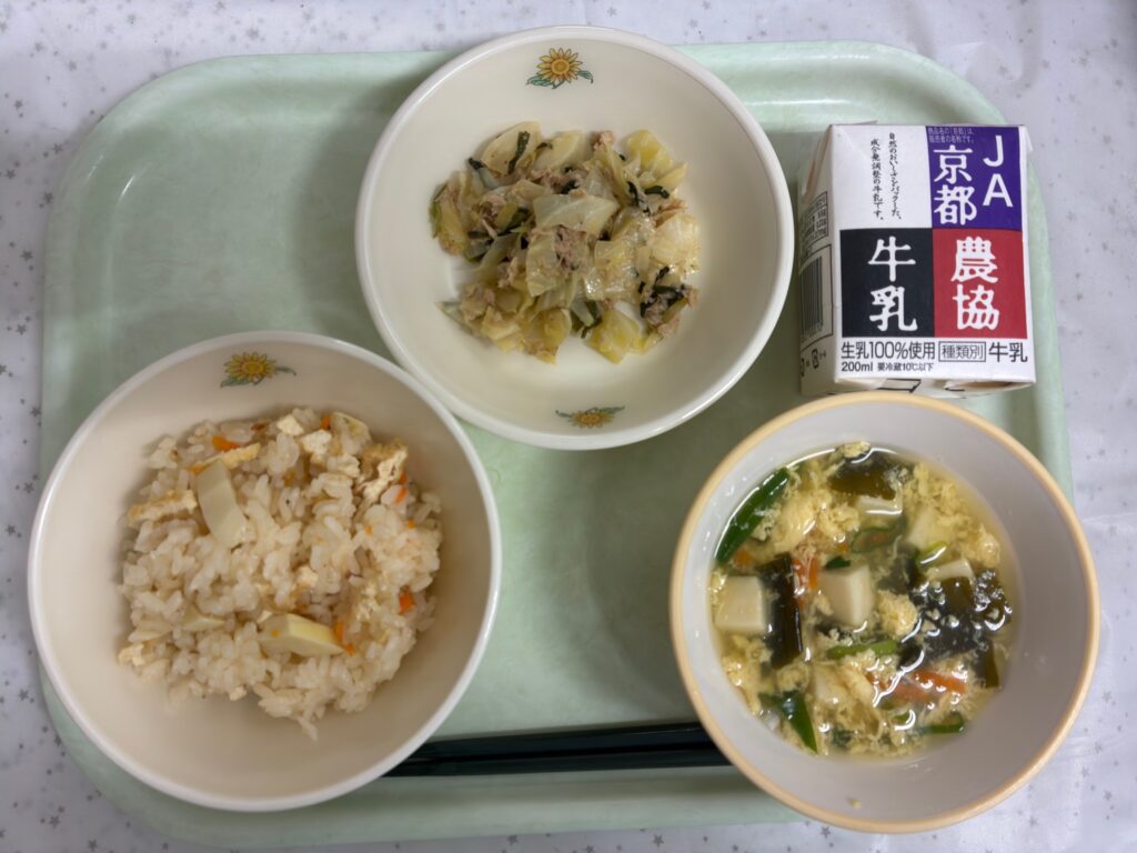 向日市の特産品であるたけのこをつかった「たけのこごはん」が給食に登場しました。