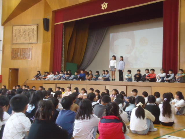11月7日(金)に人権週間の取組のひとつとして人権集会(授業参観)を行いました。昨年に引き続き2回目の取組です。学校全体のテーマ「友だちを大切に、自分も大切に」に沿った各学年の人権発表を行いました。会場はあたたかい空気に包まれました。ご参観いただいたみなさま、ありがとうございました。