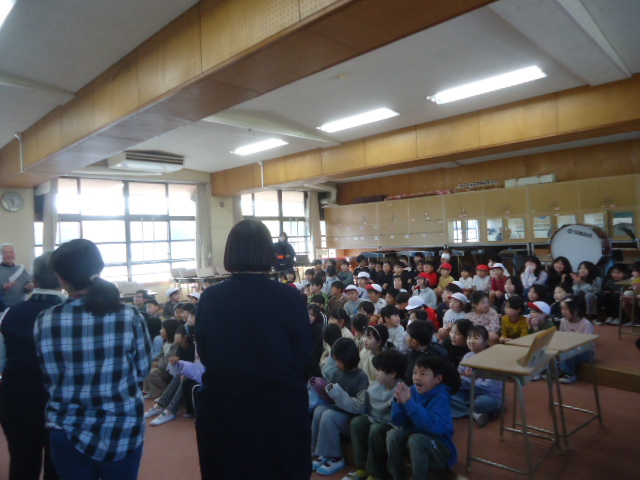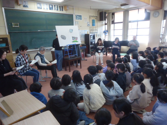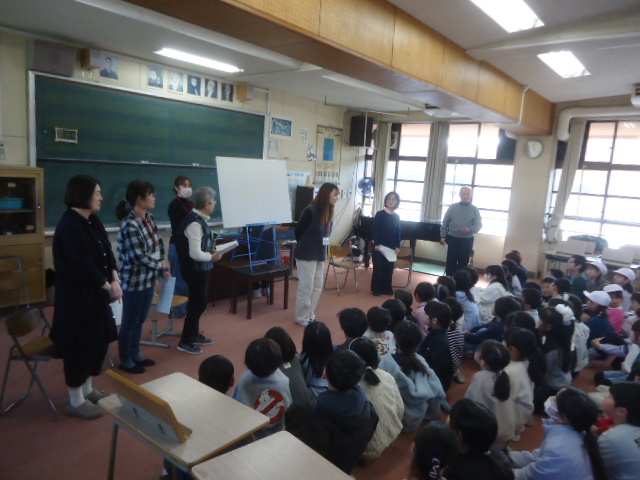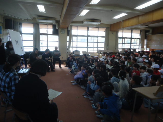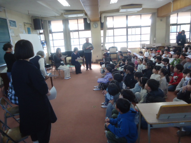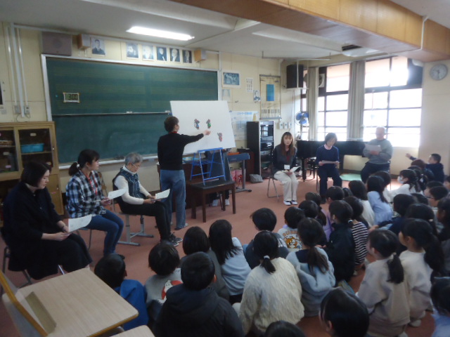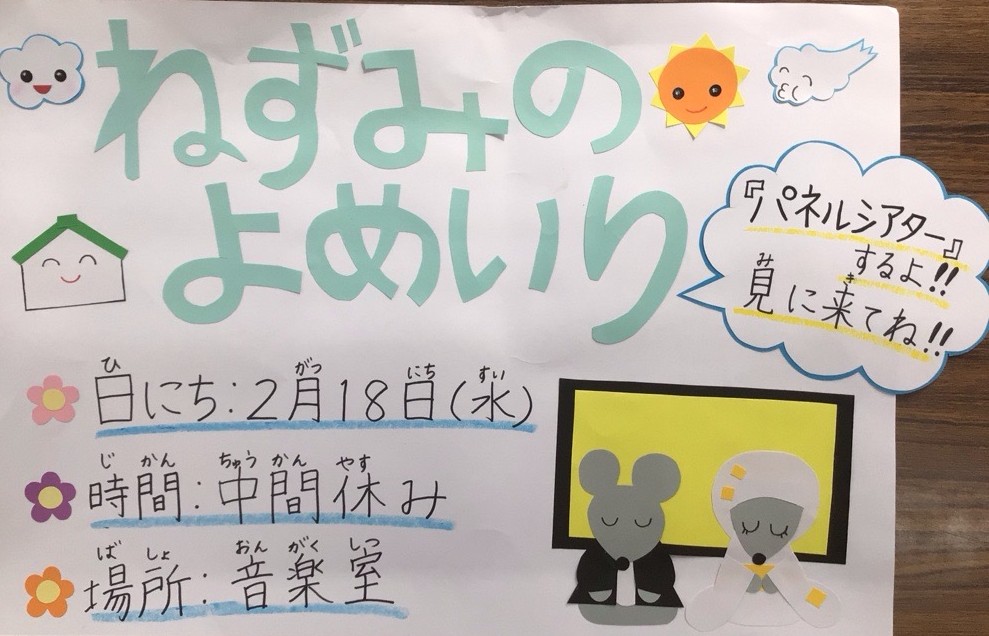 学校の様子2月18日は、本を通した豊かな学びづくりプロジェクトのメンバーによるパネルシアター「ねずみのよめいり」を上演しました。たくさんの人が会場である音楽室に集まって、パネルシアターを楽しみました。大盛況でした。メンバーのみなさま、ありがとうございました。