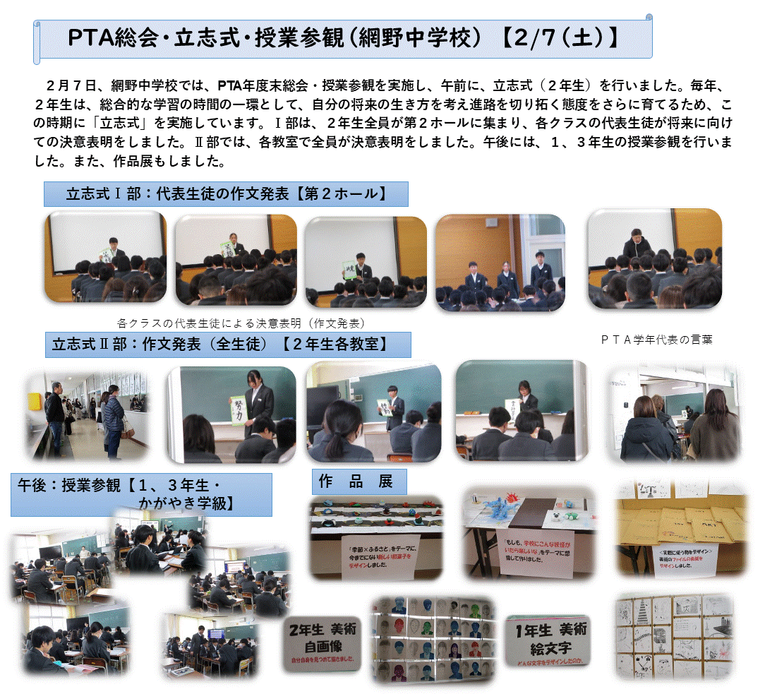 PTA総会・立志式・授業参観(網野中学校) 【2/7(土)】