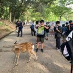 鹿せんべいを持っていると鹿にたくさん寄ってこられ、逃げ出したり、せんべいを投げたりして、ちょっと怖かったようです。