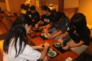 Aグループは「宇治抹茶体験」と「伏見稲荷大社」