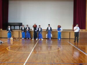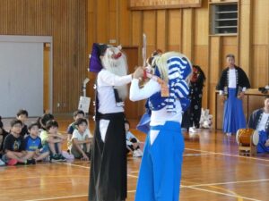 学校に神楽がやって来た! 学校の様子 Twitter Facebook はてブ Pocket LINE コピー 2025.10.20 10月、京丹後市のたくさんの場所で秋祭りが行わます。 秋祭りの前日、網野神楽保存会の方々が学校に来て、網野神楽の舞いを見せてくださいました。 400年以上前から受け継がれてきた地域の伝統芸能を、全校で鑑賞しました。 COUNTER: 44
