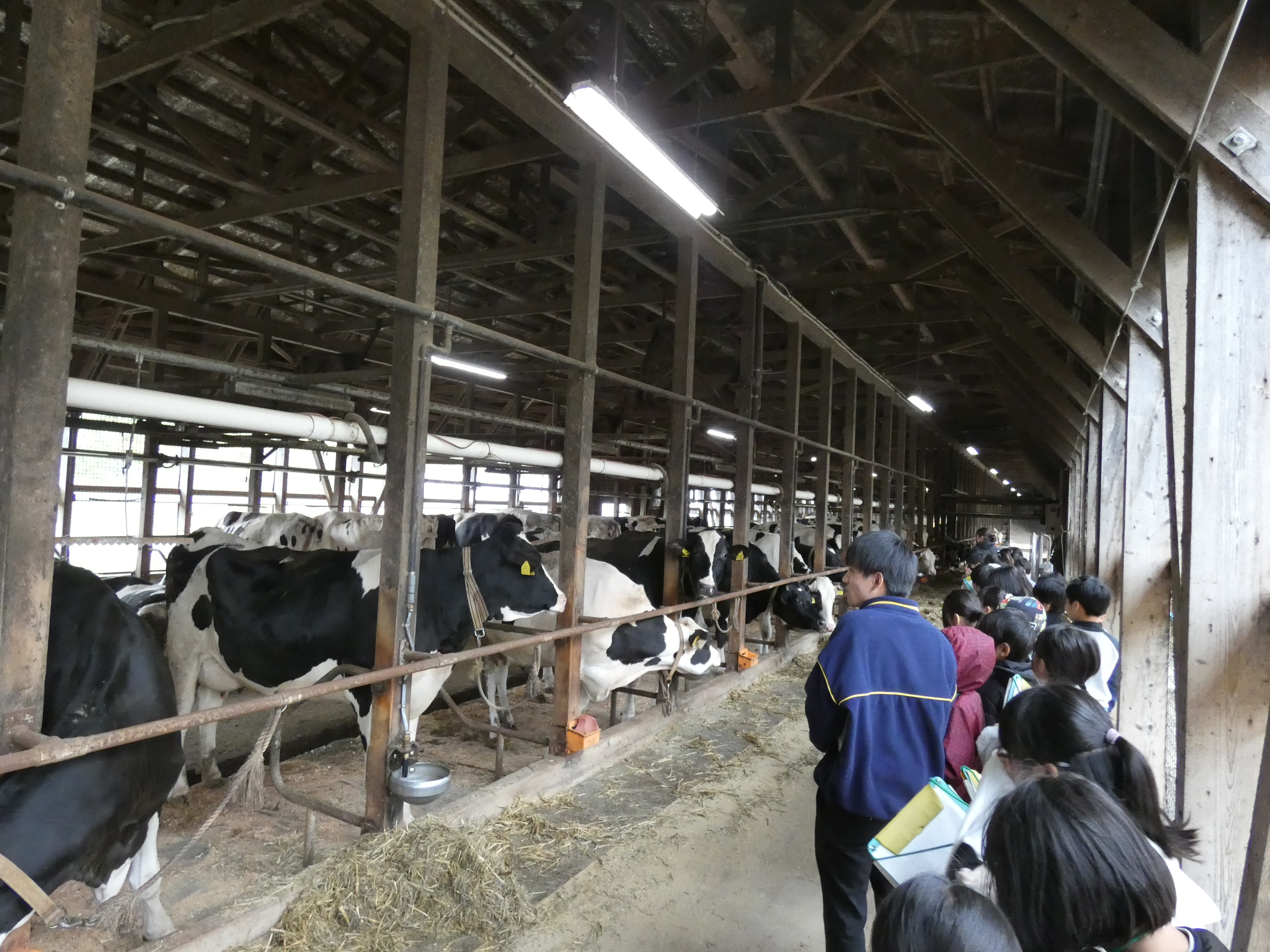 乳牛を育てる仕事について話を聞いたり牛舎を見学したりして、おいしい牛乳をつくる元気な牛を育てる工夫・努力や苦労を調べました。