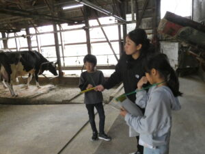 今回は“牛を育て、おいしさを広めるお仕事名人”について調べるため、町内の牧場へ見学に行きました。