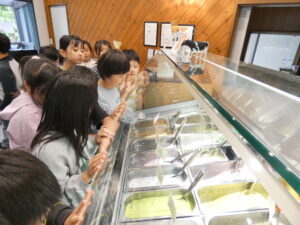 そのあと、育てられた乳牛から搾った生乳をつかったアイスクリーム、ジェラートを売るお店の見学と試食をしました。