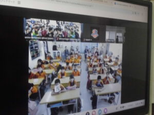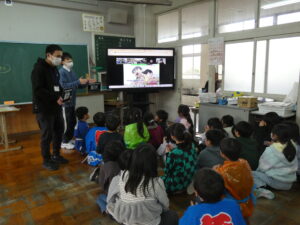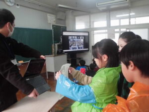 画面を通して外国の小学校の子どもたちと交流するのは、初めての経験です。