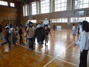 チーム練習が始まった初日、8の字跳びが得意ではない児童は少し緊張した表情でしたが、日ごとに縄の速さや跳ぶタイミングをつかみ、徐々につながって跳べる班が増えてきました。