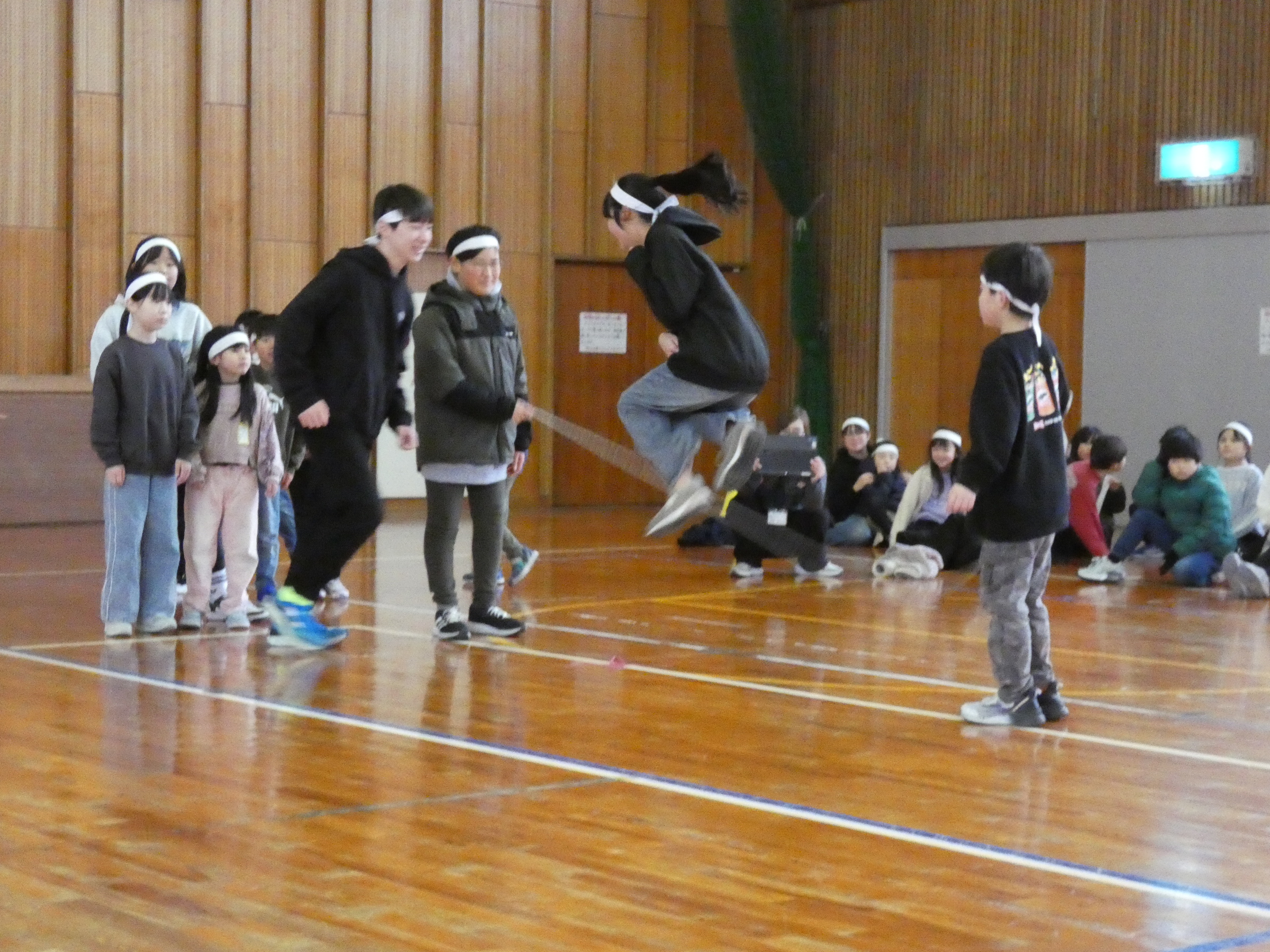 どんどん上達して回数が増えていく班もあれば、縄に入って跳ぶことが難しい低学年がいる班もありました。