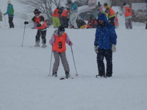 スキーをするのは初めてという子がほとんどでしたが、多くの保護者とボランティアのみんさんに指導協力いただき、ぐんぐん上達することができました。