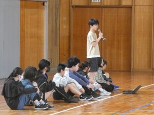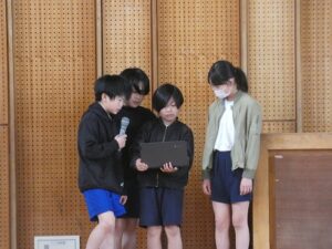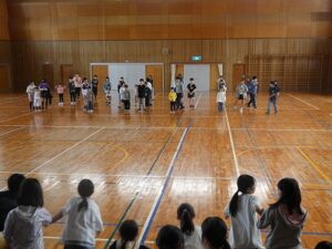 入学式から約2週間がたち、1年生たちも学校生活に慣れてきました。今日は1年生を迎える会。5・6年生が1年生に楽しんでもらおうと準備を進めてきました。まず6年生と手をつないで入場し一人一人自己紹介をしました。5年生は「もうじゅうがりにいこうよ」を6年生は「ジャンケンピラミッド」を進行し1年生は笑顔いっぱいになりました。そんな1年生を見て笑顔になる2~6年生もすてきでした!