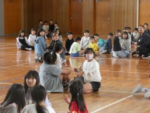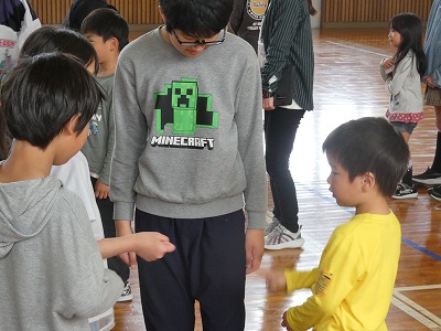 学校の様子入学式から約2週間がたち、1年生たちも学校生活に慣れてきました。今日は1年生を迎える会。5・6年生が1年生に楽しんでもらおうと準備を進めてきました。まず6年生と手をつないで入場し一人一人自己紹介をしました。5年生は「もうじゅうがりにいこうよ」を6年生は「ジャンケンピラミッド」を進行し1年生は笑顔いっぱいになりました。そんな1年生を見て笑顔になる2~6年生もすてきでした!