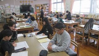 昨年度から続けている異学年のこつこつタイム。学級閉鎖の関係でクラスで行うこともありますが、週1回1時間学習をしています。静かに集中して、みんなプリントに向き合っています。かっこいいです!福知山公立大学の学生の方も採点を手伝ってくれています...
