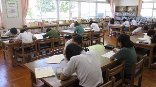 複数の学年が一緒になって、計算問題などに取り組むこつこつタイムがスタートしています。100マス計算をみんなで行い、学年に合わせたプリントに取り組んでいきます。45分集中が続き、黙々と頑張る姿はたいへん素晴らしいです。