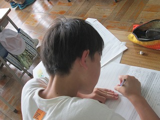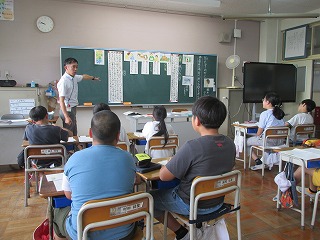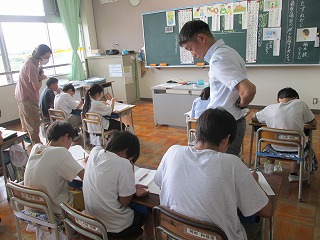 5年の国語科では戦争があった頃をモチーフに現代の主人公が戦争について考える教材「たずねびと」を用いて、主人公の心情に迫る学習をしています。さすが5年生、教材について担任の先生と一緒に深く考えています。難しい教材ではありますが、発表したり、1人で考えたり集中して頑張っています。