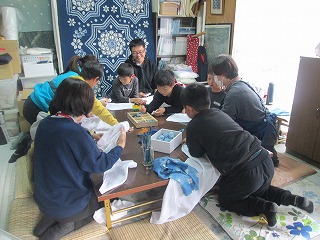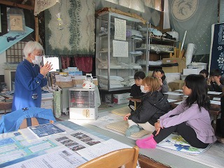 3年 藍染め あんがっこ日記 Twitter Facebook はてブ Pocket LINE コピー 2025.12.08 藍同好会の皆様にご指導いただき、藍の里にて藍染めの体験をしました。藍を植えたり、すくもを作ったりとこの1年、藍に関わってきた3年生。学んできたことを活かし、工夫しながら藍染めをすることができました。