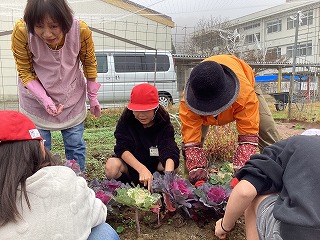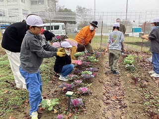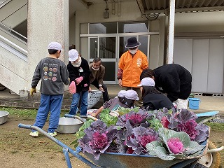 4年 葉ボタンの準備 あんがっこ日記 Twitter Facebook はてブ Pocket LINE コピー 2025.12.05 アンガハッピースの植村玲子さんご指導の下、大切に育ててきた葉ボタン。音楽鑑賞会がある5日に地域に販売をします。今日は販売のための準備をしました。みんなもくもくと頑張りました。
