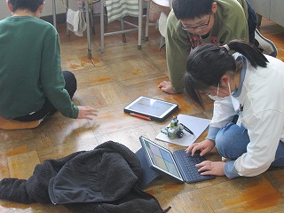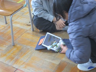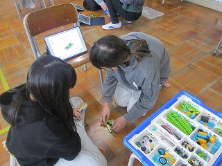 プログラミング学習に利用するキットが福知山市にあり、期間を決めて各小学校に回ってきます。今は庵我小学校です。6年生では車をつくり、どう動かしていくかプログラムをしていきます。タブレットで次々指示を作っていきます。先を読んで指示を考えていくことが大切になります。