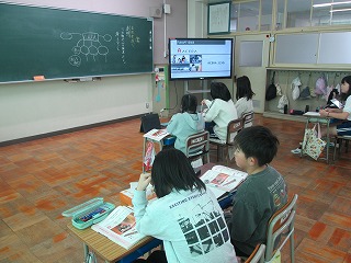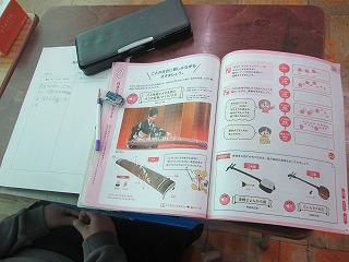 3年生では、初めて使っているリコーダーです。もうすぐ使い始めて1年です。いい姿勢で演奏できていたり、指を見ないで演奏できることもできます。子どもは慣れるのが早いですね!4年生は正月にちなんだ曲を鑑賞します。「連想」して書きましょうとの指導がありました。ただ単に感想を書くだけでなく、表現方法を増やしています。