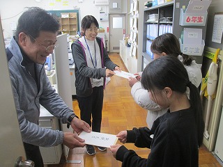 卒業に向けて、様々なプロジェクトが動いています。卒業文集を担当する児童が職員室に卒業文集への寄稿の依頼にきました。「親しき仲にも礼儀あり」で、とっても神妙に、ていねいに依頼をしていました。1つ1つの出来事が感慨深くなってきました・・・。