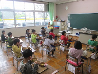 初めての給食です あんがっこ日記 Twitter Facebook はてブ Pocket LINE コピー 2026.04.13 1年生は初めての給食をいただきました。長ーい廊下の先から給食を運び、みんなで配膳します。おいしく食べることができたかな?歯磨きもきちんとできました。