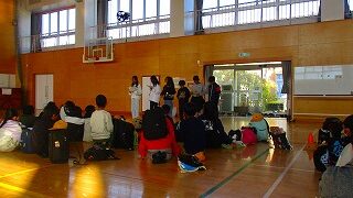 1日目の最後の活動、キャンプファイヤーです。歌を歌ったり、ダンスやゲームをしたりしました。