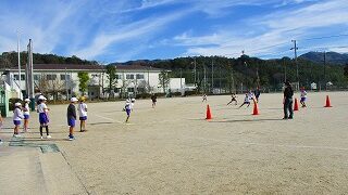 12月19日(金)の5時間目に4年生が運動場でキックベースボールをしました。攻撃チームと守備チームに分かれてゲームをしました。