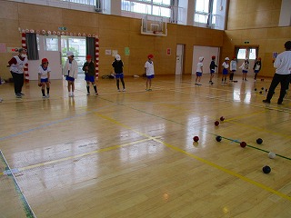 ボッチャ体験(2・3年) 2年 2026.02.26 2月26日(木)の2時間目に2年生が、3時間目に3年生がボッチャを体験しました。ボッチャとは、ジャックボール(目標球)にどれだけ球を近づけられるかをチームで競う、共生スポーツです。 城陽市ボッチャ協会のみなさんにルールを教えていただいたあと、試合をしました。ボッチャ協会のみなさん、ありがとうございました。 <2年生> <点数を数えます> <3年生> <ありがとうございました> Post Views: 5