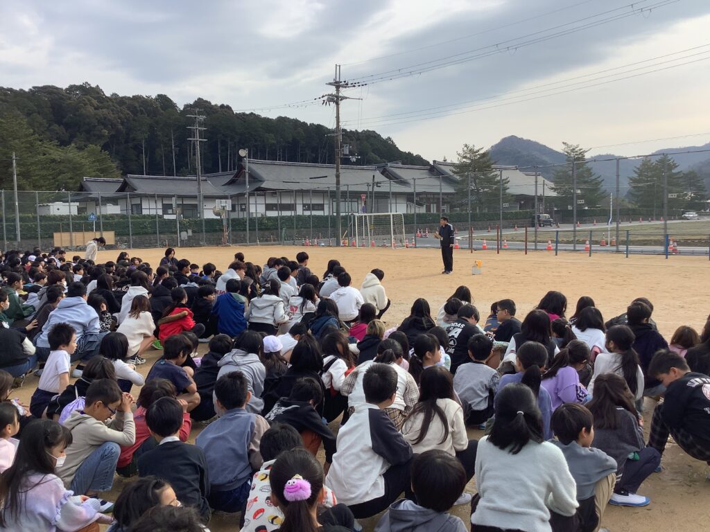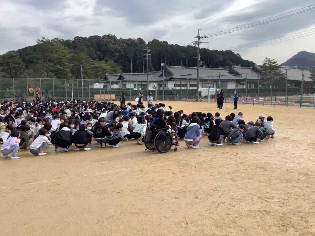 1月15日(木)の休み時間に地震を想定した避難訓練を実施しました。今回の訓練では、休み時間の遊歩時に放送を聞いて避難をしました。必ずしも教師が近くにいるわけではない状況で、放送や近くの人の話をしっかりと聞いて行動する力が求められます。「お・は・し・も・て」をキーワードに、避難をしていますが、遊歩時ということもあり、少し話し声が目立ちました。