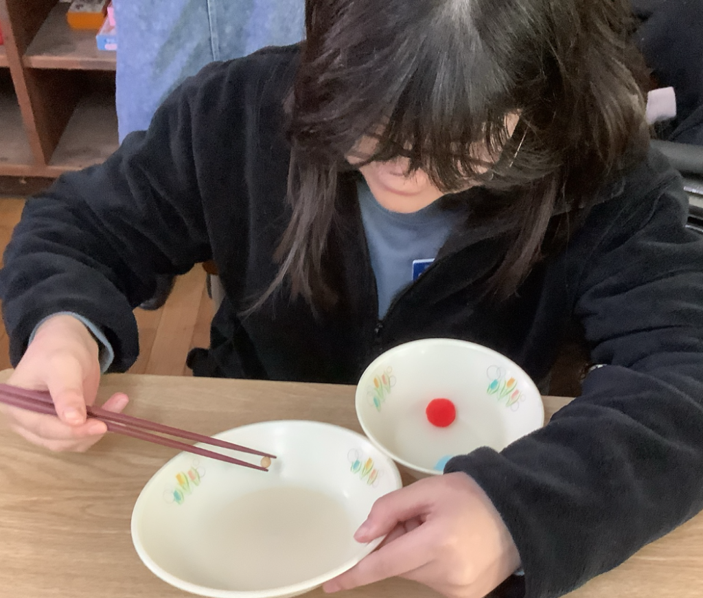 たんぽぽ学級 食の指導「おはし名人になろう」 投稿 2026.02.02 28日(水)に、たんぽぽ学級で食の指導「おはし名人になろう」の学習をしました。正しいおはしの持ち方を学び、おはしを上手に使うことを目標に学習しました。正しいおはしの持ち方を練習し、正しい持ち方を意識して、スポンジや豆をつまむことができました。 Post Views: 7