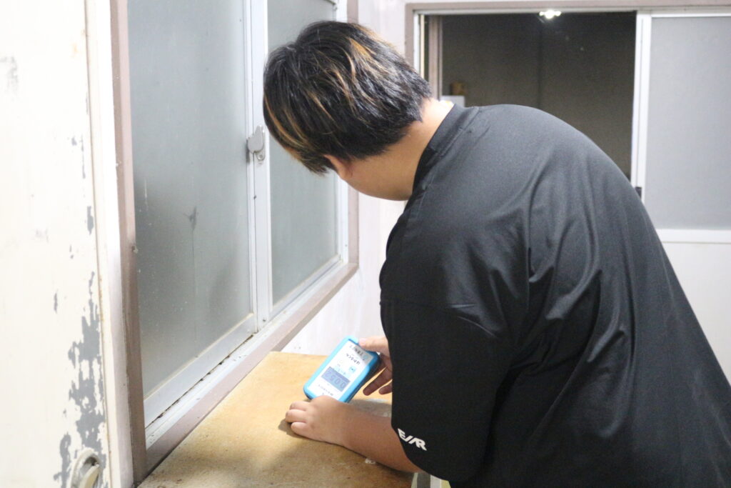 放射線は、私たちの生活している周りにも、ごくわずかの量が存在していることを学習しました。これを検証するために、簡易放射線測定器を用いて、花崗岩、湯の花等5種類の測定資料を測定したり、校内を探索し自然放射線を測定する自然放射線測定実験を行ったりしました。