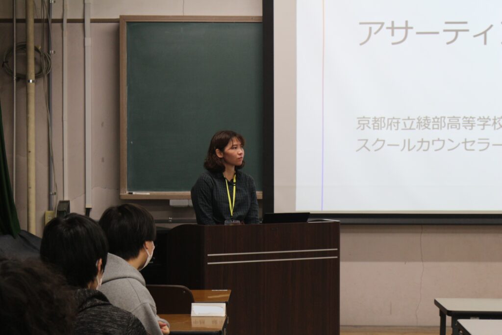 令和7年11月25日(月)にスクールカウンセラーの辻絢衣先生をお招きし、「アサーティブコミュニケーション」について学びました。