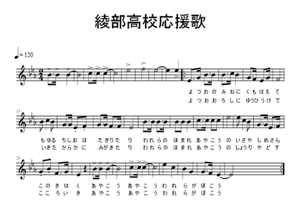 PTA PTA保護者応援歌教師綾部綾部高校綾高 【PTA広報委員より】綾部高校応援歌 PTA Twitter Facebook はてブ Pocket LINE コピー 2025.11.04 2025.10.08 現在、PTA広報委員は「綾部高校応援歌復活プロジェクト」という活動をしています。その活動で綾部高校応援歌の主旋律がわかりましたので、曲にしてみました。お聴き下さい。 Post Views: 293