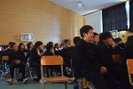 28日(火)は、綾部高校の一井育校長先生をお招きし、2年生に向けて講演をしていただきました。今を変えるために目標を立てること、チャレンジすることや前向きに物事を捉えることの大切さなど、たくさんのキーワードと共に熱いメッセージを送っていただきました。