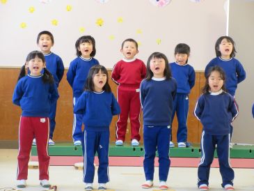 うた「カスタネット」を全員で歌いました。みんな大きな口をあけて元気に歌うことができました。