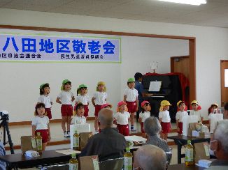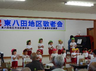 最後に歌「おじいさまおばあさま」を歌い、「いつまでもお元気でいてください」とメッセージを伝えました。