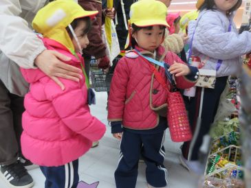 3歳児は先生と一緒に決まった金額内で好きなお菓子を選びました。