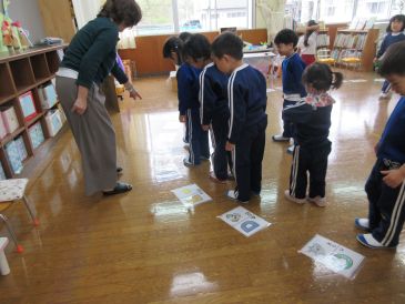 英語で名前や年齢をいう練習をしたり、英語の手遊びを教えてもらったりしました。またカードを使ったゲームも楽しみました。