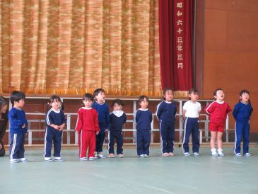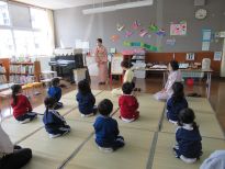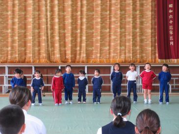 幼稚園の子どもたちは、それぞれクラスの名前を発表し、「カスタネット」の歌を歌いました。