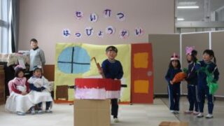 続いて各クラスの発表です。3歳児おひさまぐみは、「動物のお話」です。森に住む動物た...