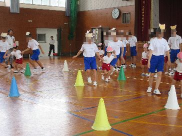 同じ校舎にある中学校の体育祭に、毎年幼稚園児も参加しています。