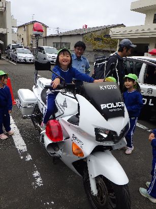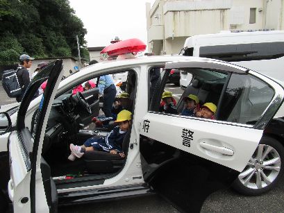 交通安全の話や、危険な目に遭わないための話を聞いたり、かっこいいパトカーや白バイに乗ったり、とても貴重な体験をすることができました。ありがとうございました。
