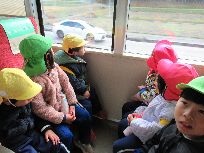 次はあやバスにのりました。停留所を知らせるアナウンスを聞きながら、次々変わる景色を見て楽しそうな子どもたちでした。