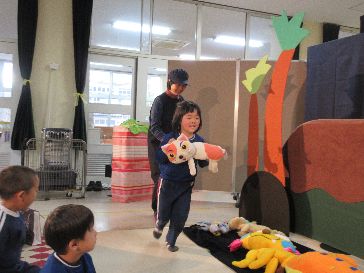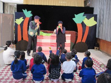 子どもたちが楽しみにしていた、人形劇団「ひみちゃたい」が幼稚園にきてくれました。