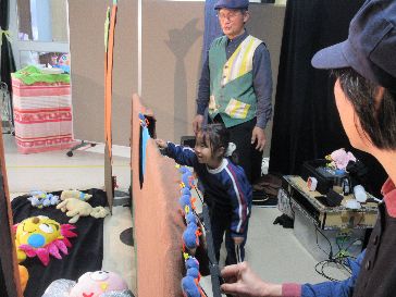可愛い人形に触れられて、自分で動かせることに、子どもたちは大喜びです。