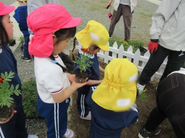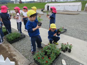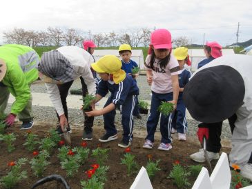 いつもお世話になっている、地域の皆さんにも来ていただき、一緒にお花を植えました。