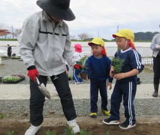 由良川花壇の「よいこの花壇展」の植栽に行ってきました。
