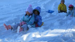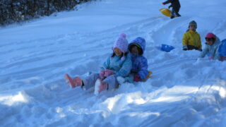 みてみて!幼稚園日記 八田中のスキー場でそり遊び