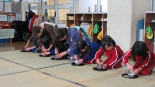 たくさん雪が降りました。八田中学校のグランドの奥の斜面が広いスキー場になりました。4,5歳児の子どもたちはそりを持ち、雪深い園庭をひたすら歩き、スキー場を目指します。