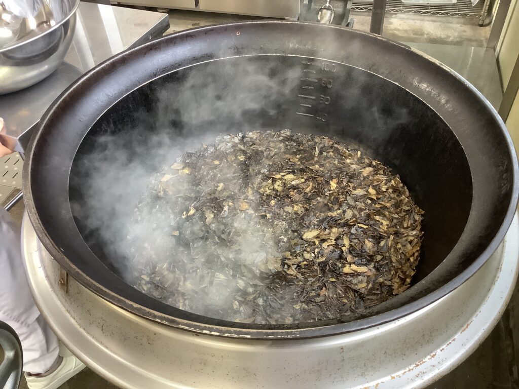 朝から給食室で京番茶を煮出していると、給食室が京番茶の香ばしい香りに包まれていました。